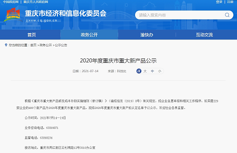 登錄網(wǎng)址:2020年度重慶市重大新產(chǎn)品公示