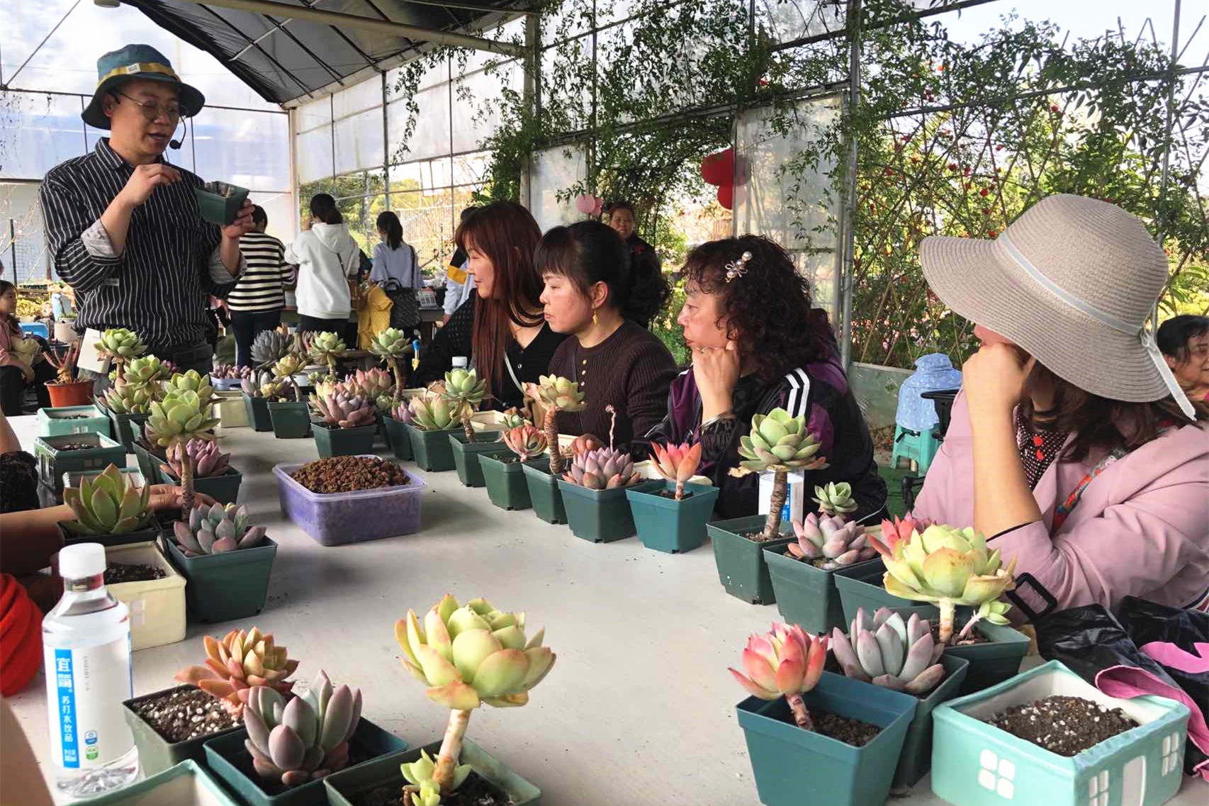 活動伊始,段昌敏代表工會女工委員會向在場女性同胞們送上了節(jié)日祝福,并組織大家參觀了多肉植物園。隨后,多肉植物園園主為女職工們科普多肉植物,并講授如何培養(yǎng)多肉,期間的有獎競答將活動引入了高潮。在進行別具一格的多肉植物DIY時,大家圍坐在一起,在園主的講解和指導(dǎo)下,饒有興趣的開始栽種。剖土、栽種、鋪面、美化……一盆盆“小巧呆萌”的組合多肉呈現(xiàn)在眼前。大家都樂在其中,一會兒談笑風生,一會兒相互協(xié)助、拍照留念,讓活動在愉快的氛圍中有序開展。