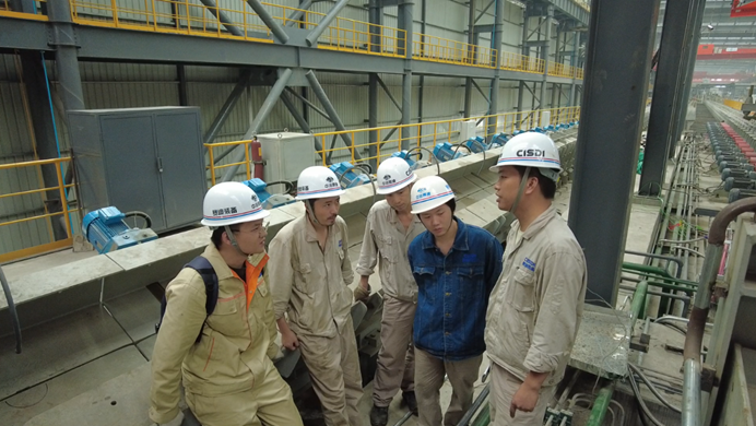 而同樣在現場不停奔走的還有產品設計研究院張程霖、周德洪、程江、張子念和軋鋼與裝備事業部夏棋、高陽等人。為做好技術指導,他們每天背著電腦在設備間來回穿梭,黨員張程霖說:“只有在現場,心才踏實。”而正是這樣的奉獻精神,因本次項目服務,耽誤了孩子轉學手續的辦理。預備黨員周德洪作為本條生產線的總設計師,更是事事靠前,既當技術指導又干鉗工安裝。縱使他已算是公司頗有經驗的“老手”卻也隨時帶著筆記本,仔細收集各項數據,整理每項技術問題,為后續設計優化積累經驗。